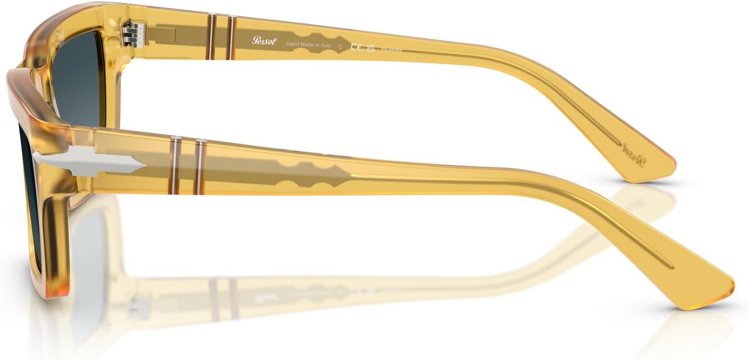 Persol Men’s Po3363s Rectangular Sunglasses(Miele/Light Blue Gradient Dark Blue)