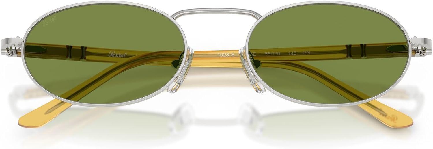 The Persol PO1023S sunglasses feature a distinctive oval silhouette from Persol's Sartoria collection. This sophisticated design showcases a metal story with an 80's allure combined with acetate temples, while the high-bridge adds additional character to these frames that creates luxury appeal with confident styling. Available in striking frame and lens combinations including silver with violet lenses, gold with blue lenses, black with grey lenses, gunmetal with brown lenses, gold with green lenses, and silver with green lenses that offer both classic and contemporary styling options. The oval shape provides statement proportions while the handmade-in-Italy construction ensures exceptional durability and all-day wearability. Perfect for the sophisticated individual who embraces bold design choices and personal expression, these sunglasses represent the intersection of art and design with quality materials refined over decades. For those who value authentic Italian design legacy and appreciate unique aesthetics with retro influences, these frames transition effortlessly from creative environments to exclusive social settings. All lenses offer complete UV protection to shield your eyes from harmful rays during outdoor activities and daily wear. Available with Persol's premium glass Barberini lenses. Each pair comes with a protective case and cleaning cloth to preserve your frames and maintain their pristine appearance. Persol sunglasses sold by authorized sellers, like Amazon.com, are eligible for all manufacturer warranties and guarantees.