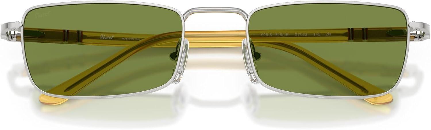 The Persol PO1025S sunglasses feature a distinctive rectangular silhouette from Persol's Sartoria collection. This sophisticated design showcases a metal story with an 80's allure combined with acetate temples, while the high-bridge adds additional character to these frames that creates luxury appeal with confident styling. Available in a range of classic frame colors including silver, gold, black, and gunmetal, paired with a curated selection of colored lenses from vibrant violet and blue to sophisticated green, brown, and grey tones. The rectangular shape provides statement proportions while the handmade-in-Italy construction ensures exceptional durability and all-day wearability. Perfect for the sophisticated individual who embraces bold design choices and personal expression, these sunglasses represent the intersection of art and design with quality materials refined over decades. For those who value authentic Italian design legacy and appreciate unique aesthetics with retro influences, these frames transition effortlessly from creative environments to exclusive social settings. All lenses offer complete UV protection crafted with Persol's premium glass Barberini lenses to shield your eyes from harmful rays during outdoor activities and daily wear. Each pair comes with a protective case and cleaning cloth to preserve your frames and maintain their pristine appearance. Persol sunglasses sold by authorized sellers, like Amazon.com, are eligible for all manufacturer warranties and guarantees.