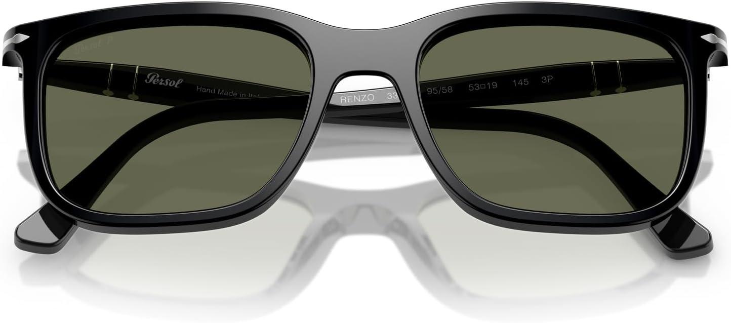 Don’t miss out on our limited-time offer: buy Persol Po3357s Renzo Rectangular Sunglasses(Black/Polarized Green), get {accessory} 50% off!
