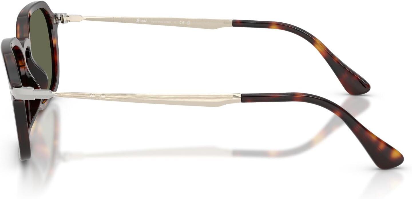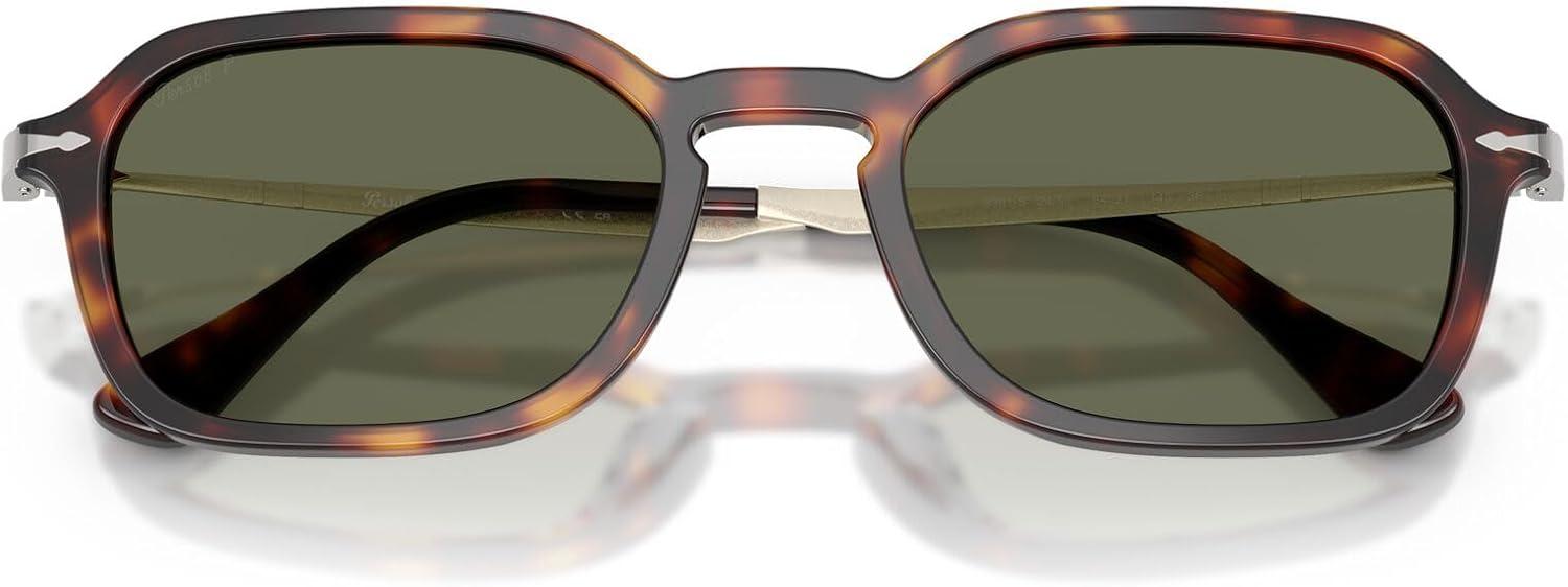 The Persol PO3381S sunglasses feature a distinctive round silhouette from Persol's Galleria collection. This sophisticated design showcases premium acetate seamlessly paired with sleek, thin metal temples and acetate temple tips that create impeccable craftsmanship with a perfect balance between elegance and modernity. Available in versatile frame and lens combinations including striped black and brown with light blue lenses, striped black and greige with brown lenses, striped black and olive with green lenses, striped black and grey with blue lenses, havana with polarized green lenses, and black with polarized dark grey lenses that offer both classic and contemporary styling options. The round shape provides flattering proportions while the handmade-in-Italy construction ensures exceptional durability and all-day wearability. Perfect for the sophisticated individual who embodies charisma and personal style, these sunglasses represent the intersection of art and design with quality materials refined over decades. For those who value authentic Italian design legacy, these frames transition effortlessly from international travel to exclusive social settings. All lenses offer complete UV protection to shield your eyes from harmful rays during outdoor activities and daily wear. Each pair comes with a protective case and cleaning cloth to preserve your frames and maintain their pristine appearance. Persol sunglasses sold by authorized sellers, like Amazon.com, are eligible for all manufacturer warranties and guarantees.