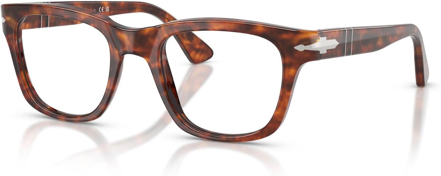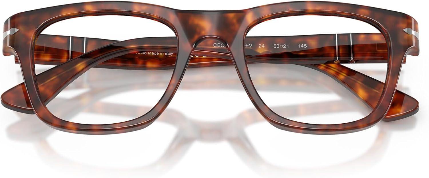 The Persol PO3389V Cecil eyeglass frames feature a squared and bold silhouette from Persol's Officina collection. This sophisticated design showcases a vintage allure with bio-acetate material reintroduced with a new color palette, featuring medium, versatile and timeless transparent tones that creates contemporary luxury appeal with confident styling. Available in a curated range including classic havana and black alongside medium, versatile and timeless transparent tones in ocean, brown heart, and brown grey that offer both traditional and modern styling options. The square shape provides statement proportions while the handmade-in-Italy construction ensures exceptional durability and all-day wearability. Perfect for the sophisticated individual who appreciates authentic Italian craftsmanship with environmental consciousness, these frames represent the intersection of art and design with sustainable materials refined over decades. These frames transition effortlessly from professional boardrooms to creative environments and exclusive social settings. These prescription-ready frames are designed to be fitted with your custom prescription lenses for clear vision. Each pair comes with a protective case and cleaning cloth to preserve your frames and maintain their pristine appearance. Persol eyeglass frames sold by authorized sellers, like Amazon.com, are eligible for all manufacturer warranties and guarantees.