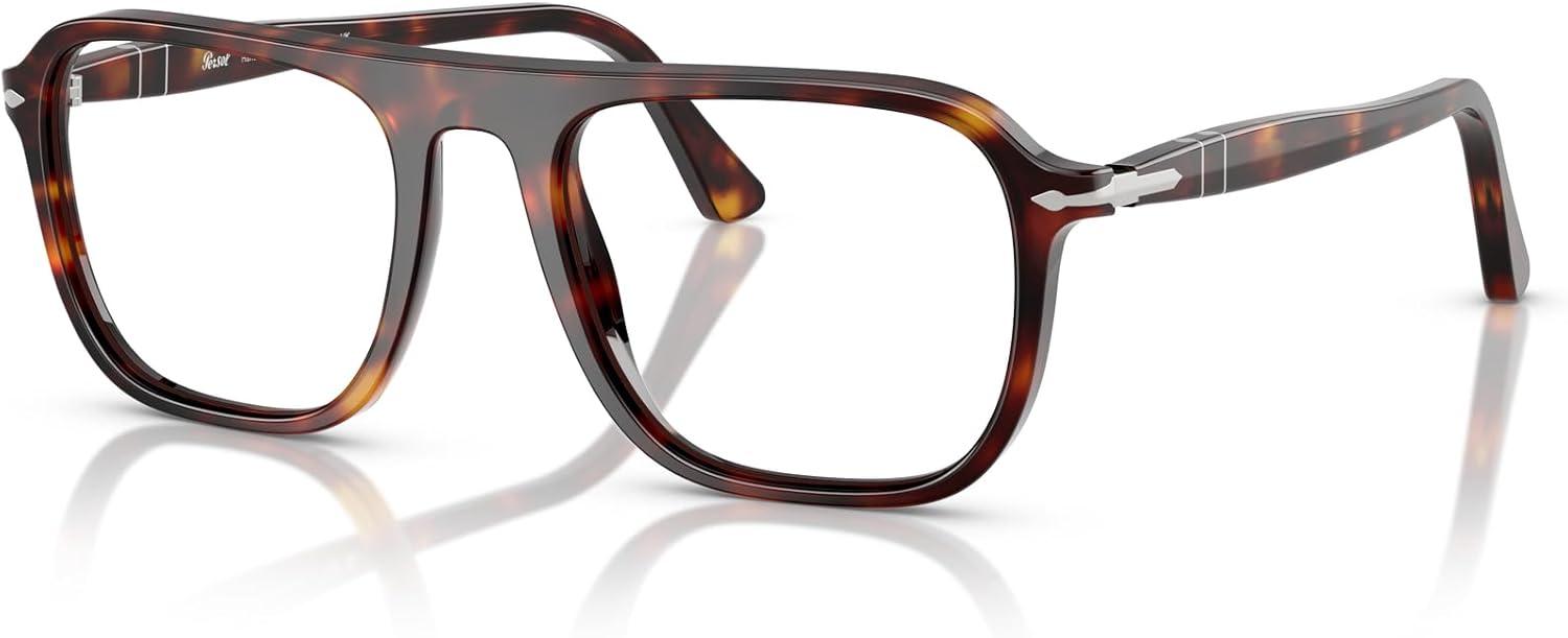Persol PO3359V eyeglasses feature a square shape and standard lenses. The design is versatile and suitable for everyday wear. These frames are perfect for adding a touch of style to any outfit. Persol eyeglass frames feature lenses that need to be replaced with prescription lenses so you can enjoy clear vision. Persol eyeglass frames sold by authorized sellers like Amazon are eligible for all manufacturer warranties. Click on the Persol link above the product title to shop the entire assortment.