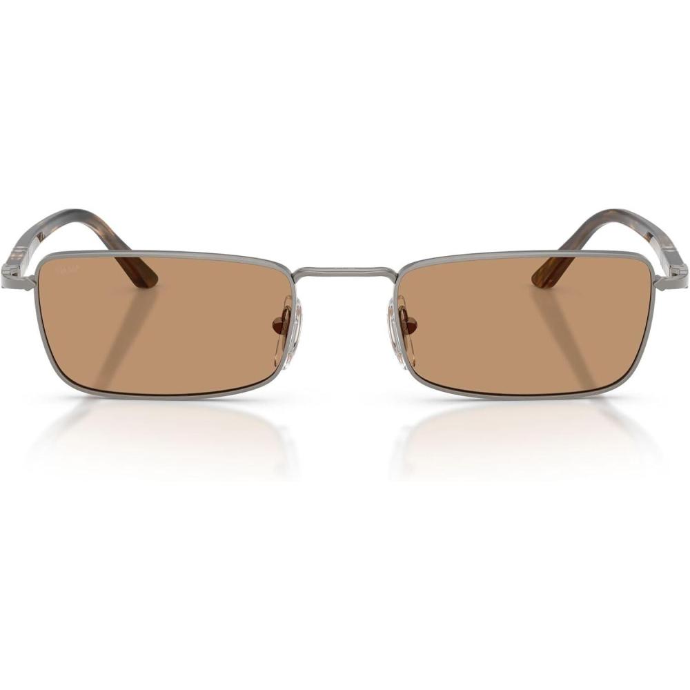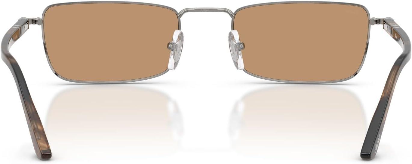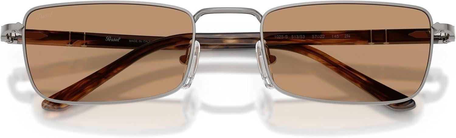 The Persol PO1025S sunglasses feature a distinctive rectangular silhouette from Persol's Sartoria collection. This sophisticated design showcases a metal story with an 80's allure combined with acetate temples, while the high-bridge adds additional character to these frames that creates luxury appeal with confident styling. Available in a range of classic frame colors including silver, gold, black, and gunmetal, paired with a curated selection of colored lenses from vibrant violet and blue to sophisticated green, brown, and grey tones. The rectangular shape provides statement proportions while the handmade-in-Italy construction ensures exceptional durability and all-day wearability. Perfect for the sophisticated individual who embraces bold design choices and personal expression, these sunglasses represent the intersection of art and design with quality materials refined over decades. For those who value authentic Italian design legacy and appreciate unique aesthetics with retro influences, these frames transition effortlessly from creative environments to exclusive social settings. All lenses offer complete UV protection crafted with Persol's premium glass Barberini lenses to shield your eyes from harmful rays during outdoor activities and daily wear. Each pair comes with a protective case and cleaning cloth to preserve your frames and maintain their pristine appearance. Persol sunglasses sold by authorized sellers, like Amazon.com, are eligible for all manufacturer warranties and guarantees.
