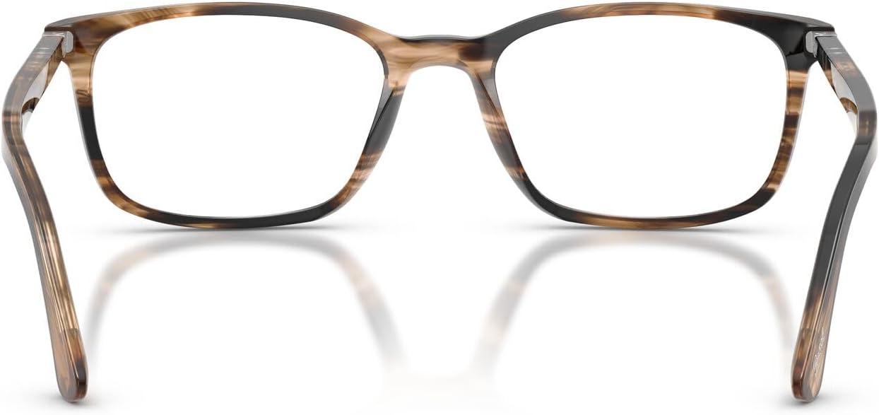 Persol womens Po3189v Rectangular Prescription Eyewear Frames(Striped Black and Olive/Demo Lens)