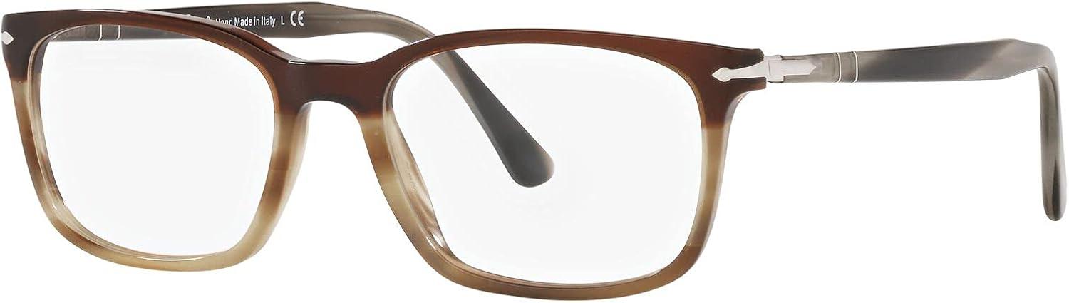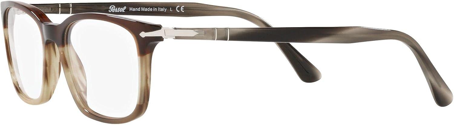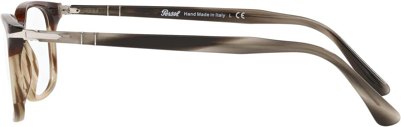 Persol Women’s Po3189v Rectangular Prescription Eyewear Frames(Striped Brown/Grey/Black/Demo Lens)