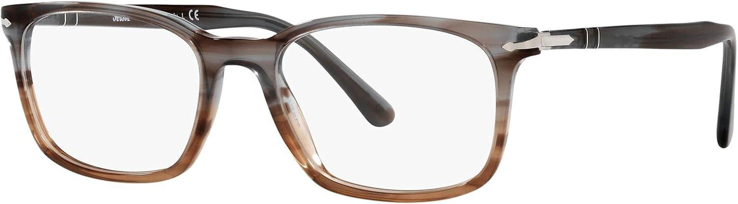 Persol womens Po3189v Rectangular Prescription Eyewear Frames(Striped Grey/Gradient Brown/Demo Lens)