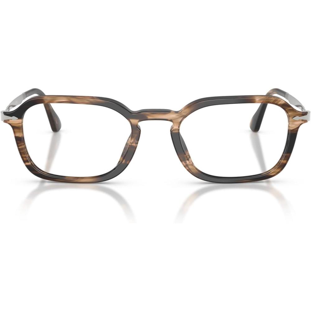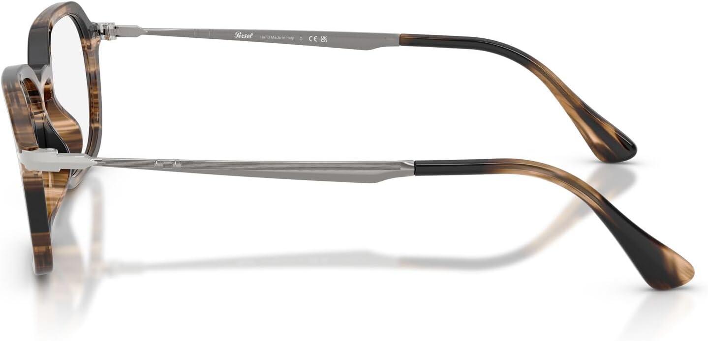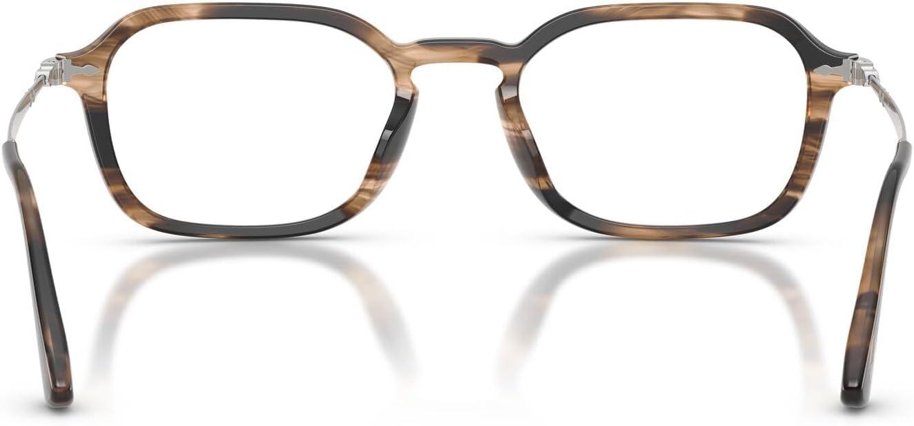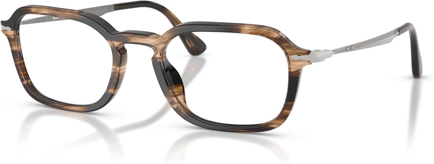 The Persol PO3381V eyeglass frames feature an elegant square silhouette from Persol's Galleria collection. This sophisticated design showcases premium acetate seamlessly paired with sleek, thin metal temples and acetate temple tips that create impeccable craftsmanship with a perfect balance between elegance and modernity. Available in refined colorways including havana, black, striped black and greige , striped black and olive, and striped black and grey that offer both classic and contemporary styling options. The square shape provides flattering proportions while the handmade-in-Italy construction ensures exceptional durability and all-day wearability. Perfect for the sophisticated individual who embodies charisma and personal style, these frames represent the intersection of art and design with quality materials refined over decades. For those who value authentic Italian design legacy, these frames transition effortlessly from professional boardrooms to international travel and exclusive social settings. These prescription-ready frames are designed to be fitted with your custom prescription lenses for clear vision. Each pair comes with a protective case and cleaning cloth to preserve your frames and maintain their pristine appearance. Persol eyeglass frames sold by authorized sellers, like Amazon.com, are eligible for all manufacturer warranties and guarantees.