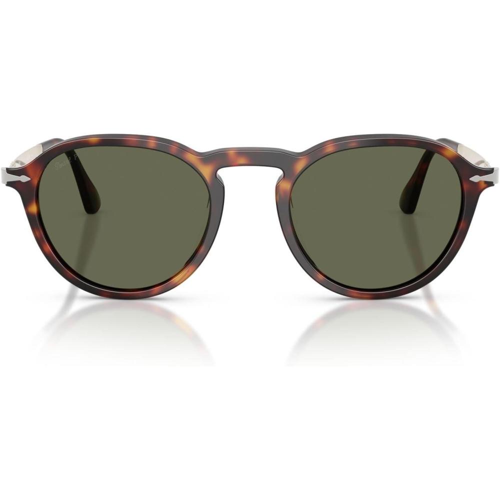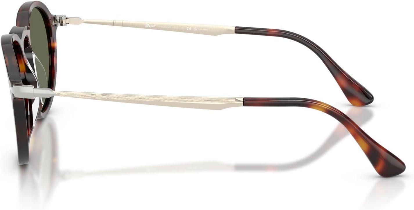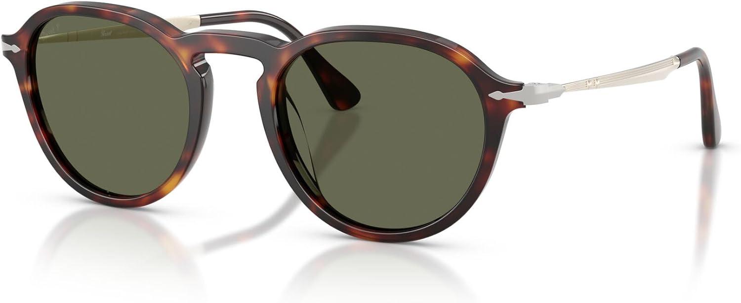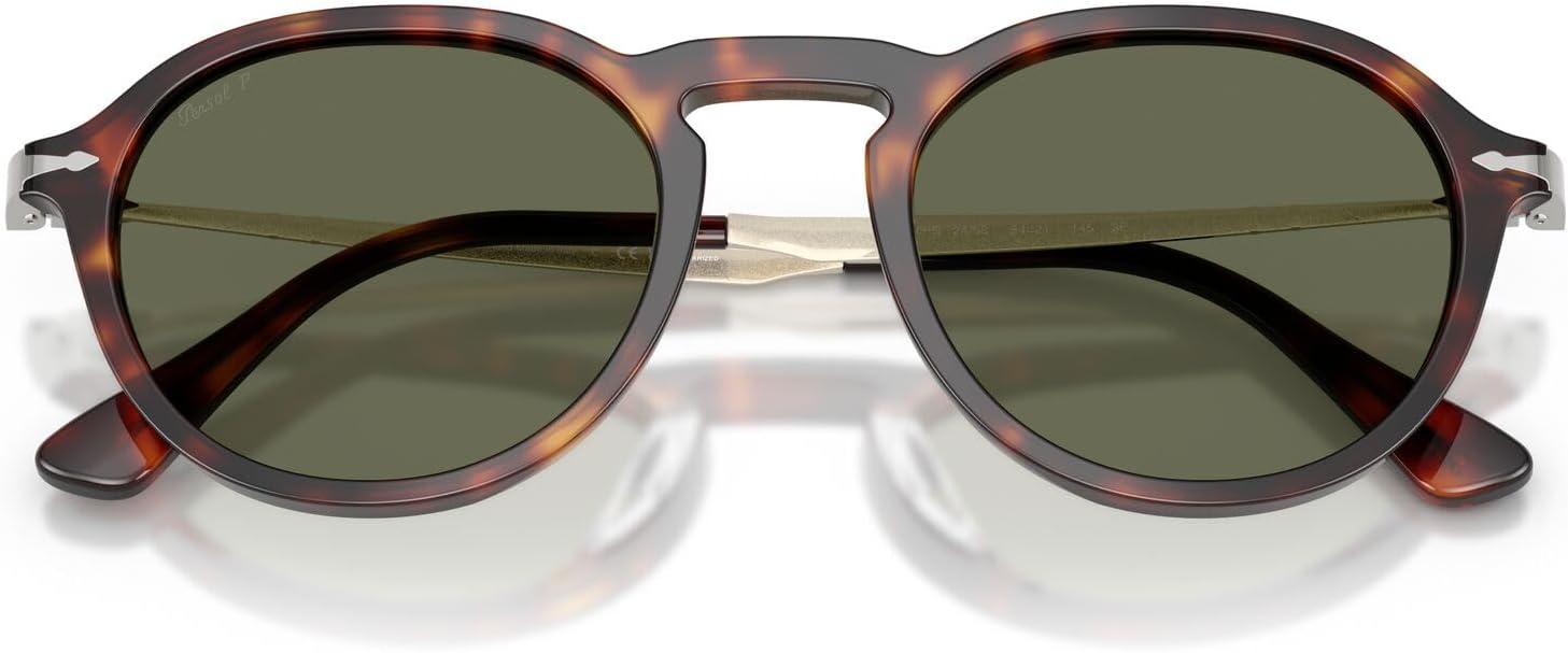 The Persol PO3383S sunglasses feature a distinctive round silhouette from Persol's Galleria collection. This sophisticated design showcases distinctive acetate seamlessly paired with sleek, thin metal temples and acetate temple tips that create impeccable craftsmanship with a perfect balance between elegance and modernity. Available in versatile frame and lens combinations including striped black and brown with light blue lenses, striped black and greige with brown lenses, striped black and olive with green lenses, striped black and grey with blue lenses, havana with polarized green lenses, and black with polarized dark grey lenses that offer both classic and contemporary styling options. The round shape provides flattering proportions while the handmade-in-Italy construction ensures exceptional durability and all-day wearability. Perfect for the sophisticated individual who embodies charisma and personal style, these sunglasses represent the intersection of art and design with quality materials refined over decades. For those who value authentic Italian design legacy, these frames transition effortlessly from international travel to exclusive social settings. All lenses offer complete UV protection to shield your eyes from harmful rays during outdoor activities and daily wear. Each pair comes with a protective case and cleaning cloth to preserve your frames and maintain their pristine appearance. Persol sunglasses sold by authorized sellers, like Amazon.com, are eligible for all manufacturer warranties and guarantees.