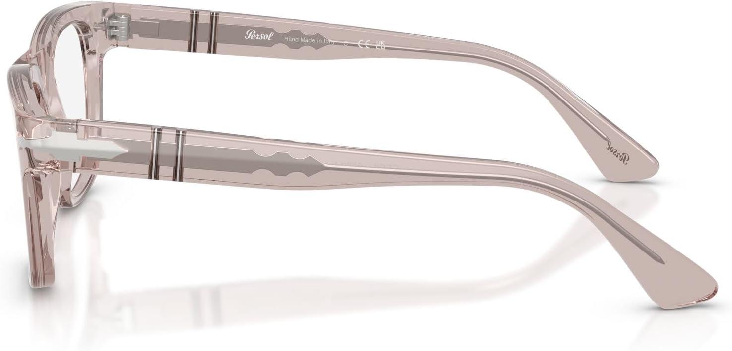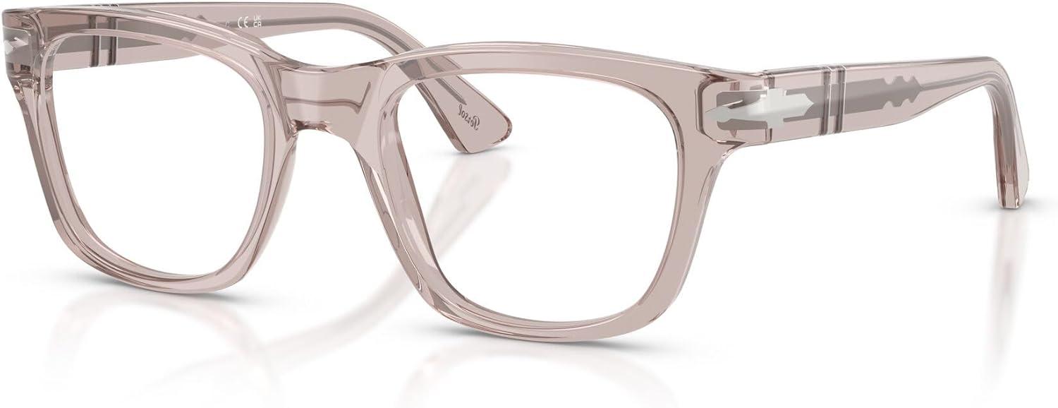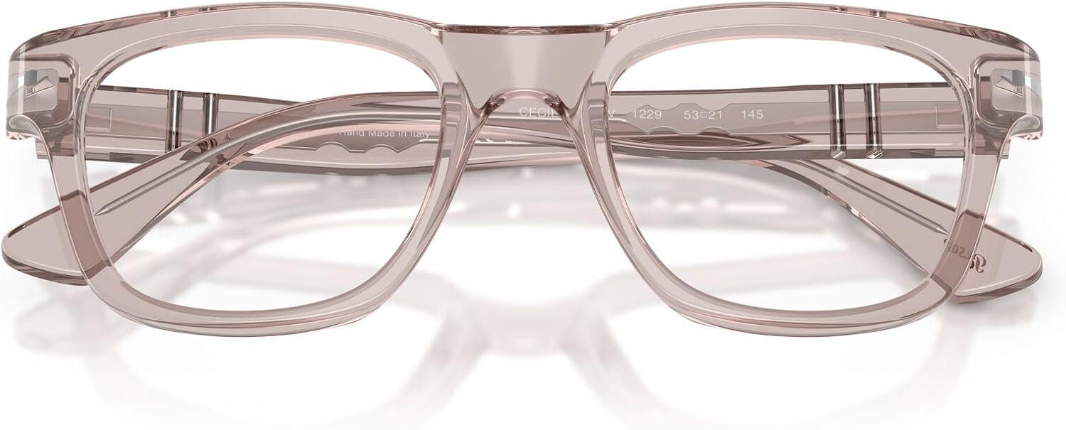 The Persol PO3389V Cecil eyeglass frames feature a squared and bold silhouette from Persol's Officina collection. This sophisticated design showcases a vintage allure with bio-acetate material reintroduced with a new color palette, featuring medium, versatile and timeless transparent tones that creates contemporary luxury appeal with confident styling. Available in a curated range including classic havana and black alongside medium, versatile and timeless transparent tones in ocean, brown heart, and brown grey that offer both traditional and modern styling options. The square shape provides statement proportions while the handmade-in-Italy construction ensures exceptional durability and all-day wearability. Perfect for the sophisticated individual who appreciates authentic Italian craftsmanship with environmental consciousness, these frames represent the intersection of art and design with sustainable materials refined over decades. These frames transition effortlessly from professional boardrooms to creative environments and exclusive social settings. These prescription-ready frames are designed to be fitted with your custom prescription lenses for clear vision. Each pair comes with a protective case and cleaning cloth to preserve your frames and maintain their pristine appearance. Persol eyeglass frames sold by authorized sellers, like Amazon.com, are eligible for all manufacturer warranties and guarantees.