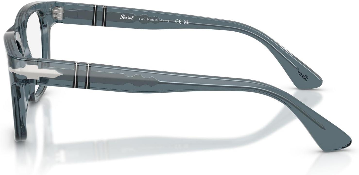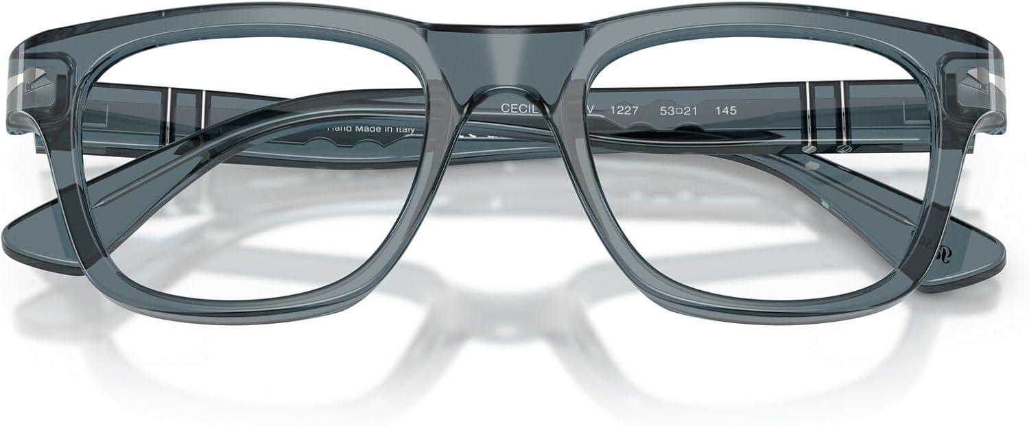 The Persol PO3389V Cecil eyeglass frames feature a squared and bold silhouette from Persol's Officina collection. This sophisticated design showcases a vintage allure with bio-acetate material reintroduced with a new color palette, featuring medium, versatile and timeless transparent tones that creates contemporary luxury appeal with confident styling. Available in a curated range including classic havana and black alongside medium, versatile and timeless transparent tones in ocean, brown heart, and brown grey that offer both traditional and modern styling options. The square shape provides statement proportions while the handmade-in-Italy construction ensures exceptional durability and all-day wearability. Perfect for the sophisticated individual who appreciates authentic Italian craftsmanship with environmental consciousness, these frames represent the intersection of art and design with sustainable materials refined over decades. These frames transition effortlessly from professional boardrooms to creative environments and exclusive social settings. These prescription-ready frames are designed to be fitted with your custom prescription lenses for clear vision. Each pair comes with a protective case and cleaning cloth to preserve your frames and maintain their pristine appearance. Persol eyeglass frames sold by authorized sellers, like Amazon.com, are eligible for all manufacturer warranties and guarantees.